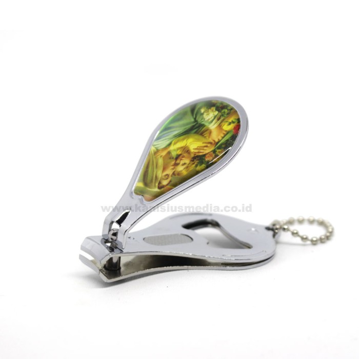Pemotong kuku terbuat dari logam stanlees berukuran 3×6 dengan gambar Rohani (Yesus, Maria, Keluarga Kudus dkk).